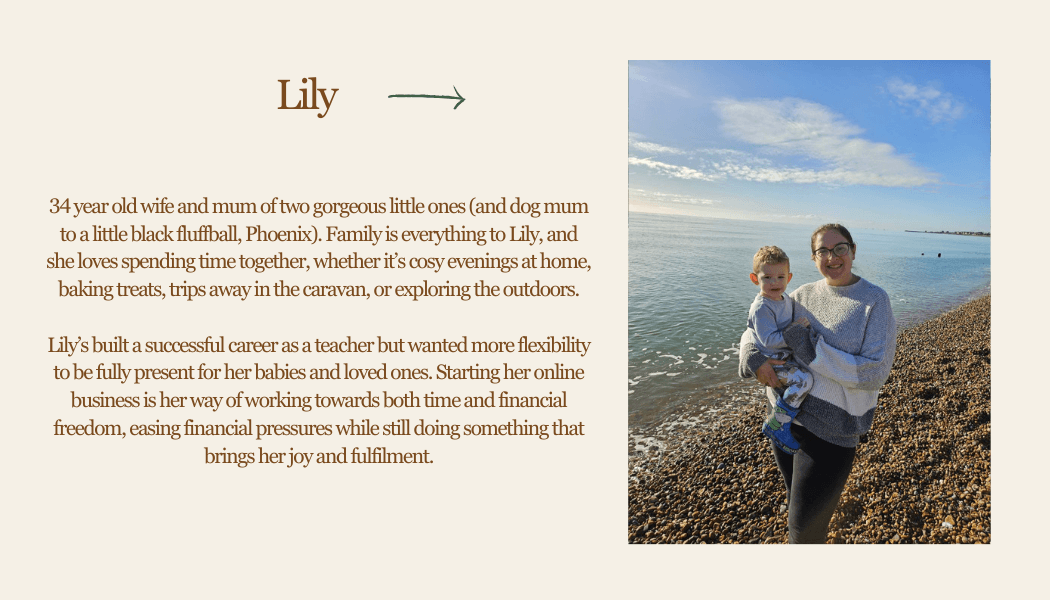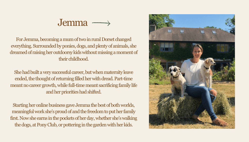 I started my online business while on maternity leave in July 2024 because I knew I wanted more. I wanted to be a present mum without sacrificing our financial security, to have time for my horses and dogs, and to create my own independence, the ability to provide for my family and build something I could look back on with pride.